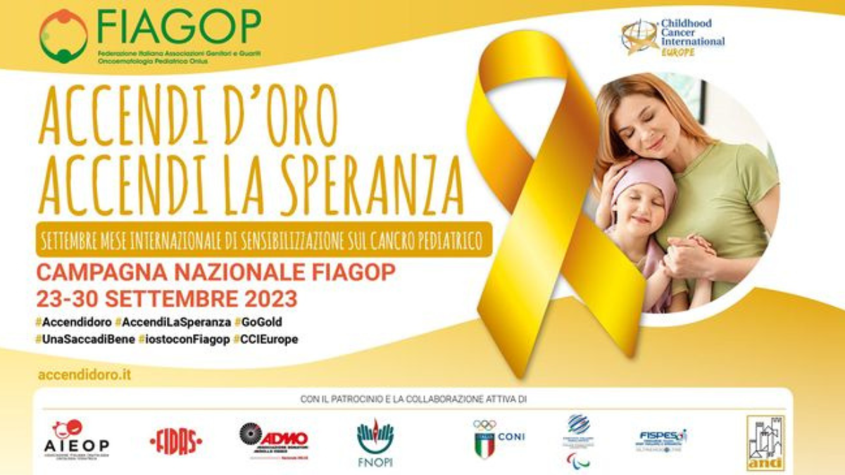 Il mese di settembre è stato il mese dedicato alla sensibilizzazione sul cancro pediatrico. La Fiagop, come già negli anni passati, ha indetto una campagna dal titolo “Accendi d’oro, accendi la speranza”, dando la possibilità a chi volesse di fare una donazione. La locandina così recitava: “Settembre è il mese scelto da Childhood Cancer International – CCI – per “accendere” l’attenzione sulle problematiche e sui diritti dei pazienti pediatrici malati di cancro e l’impatto che ha sulle loro famiglie”. A settembre, per richiamare l’attenzione di tutti sulle problematiche inerenti i tumori pediatrici, in tutto il mondo si illuminano di luce dorata edifici, monumenti e punti simbolici di Paesi e città, e viene distribuito pubblicamente il Nastrino dorato – Gold Ribbon, simbolo dell’Oncoematologia Pediatrica. Chi lo indossa riconosce apertamente la forza, il coraggio e la resilienza dei pazienti pediatrici oncoematologici. Il colore oro simboleggia quanto siano preziosi ai nostri occhi. A differenza di altri nastri di sensibilizzazione, che simboleggiano una specifica malattia, il Nastro d’oro rappresenta decine di tipi di cancro infantile. Con una maggiore sensibilizzazione sul cancro infantile, si avranno maggior consapevolezza dei primi sintomi, diagnosi più precoci, un aumento dei finanziamenti alla ricerca, terapie più adatte e più mirate e, in ultima analisi, un miglioramento nei risultati di cura. CCI è la più estesa rete mondiale di genitori, riuniti in centinaia di associazioni, presenti in 5 continenti. FIAGOP è tra i suoi soci fondatori e collabora a tutte le iniziative internazionali di sensibilizzazione per difendere e garantire il diritto alle cure e alla buona qualità di vita per tutti i bambini e gli adolescenti malati, promuovere misure a sostegno dell’intero nucleo famigliare, e sostenere la ricerca. Quest’anno FIAGOP è scesa in campo da sabato 23 a sabato 30 settembre 2023 per dare vita alla quinta Campagna di Sensibilizzazione nazionale “Accendi d’Oro, Accendi la Speranza”, in collaborazione con le sue 32 associazioni, distribuite su tutto il territorio nazionale.
