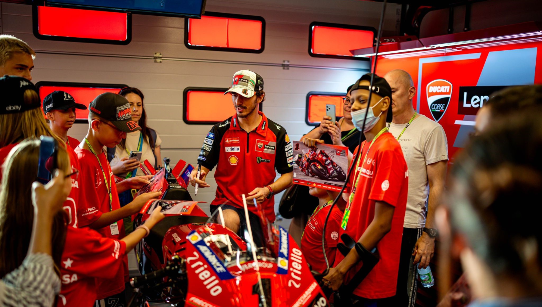 L’iniziativa, sostenuta dal Pecco Fan Club, ha visto i nostri giovani protagonisti di un weekend memorabile. Questi bambini e ragazzi nati dal 2007 al 2016 sono seguiti dal reparto di Oncoematologia Pediatrica dell’Ospedale Regina Margherita, diretto dalla professoressa Franca Fagioli, e molti di loro stanno ancora affrontando difficili terapie o sono sotto stretta sorveglianza dopo una dura battaglia contro il cancro. Il viaggio è iniziato a Torino, dove un pullman ha condotto bambini e ragazzi, assieme ai medici e agli accompagnatori, fino al Misano World Circuit Marco Simoncelli. Qui, tutti hanno ricevuto un pass esclusivo per accedere ai paddock e all’hospitality del Ducati Lenovo Team, vivendo così da vicino l’atmosfera del mondo MotoGP. Dopo un pranzo tra i box, i giovani spettatori si sono spostati sulle tribune per assistere alla gara Sprint, un momento che ha emozionato e coinvolto tutti. La giornata si è conclusa con un incontro indimenticabile: i ragazzi hanno potuto conoscere Pecco Bagnaia, che li ha accolti all’interno del box, regalando loro sorrisi, autografi e parole di incoraggiamento.