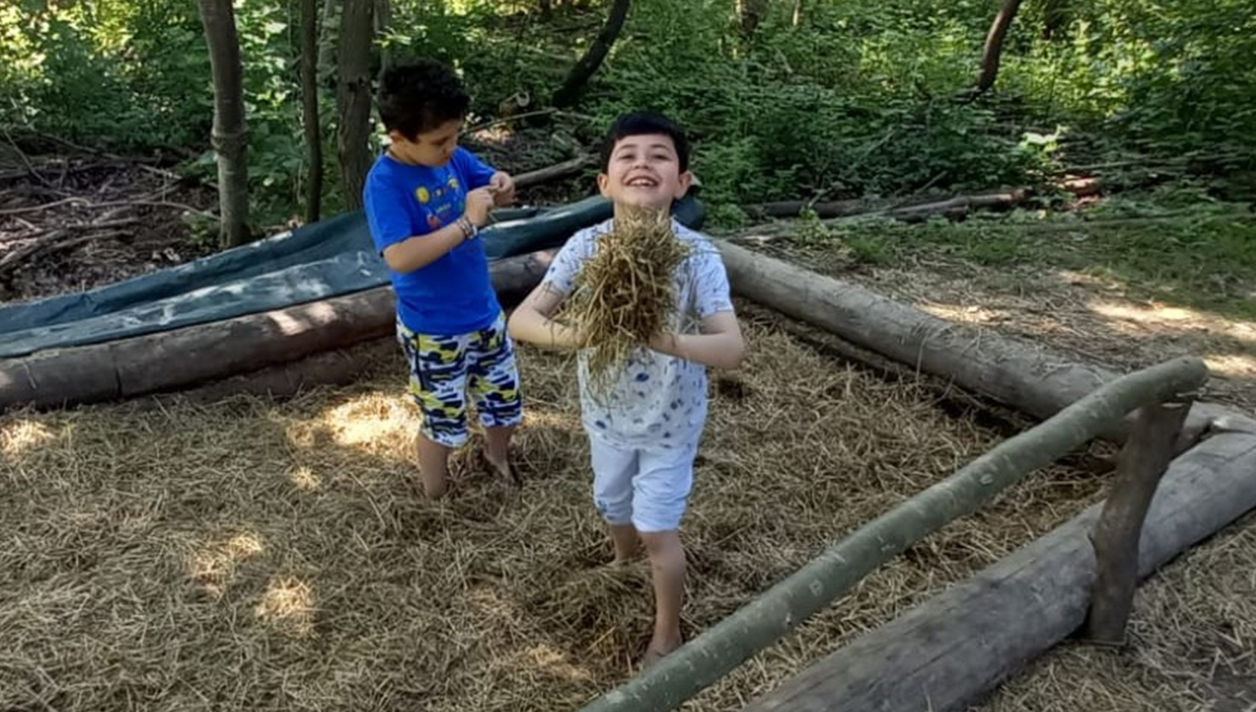 Questo progetto è il primo sorto in provincia di Torino, e vede un più ampio inserimento nel progetto transfrontaliero Alcotra Sens’action con due altri sentieri, uno in Valle Gesso Stura e l’altro in Francia presso la Ferme de Chosal. Una meraviglia scoprire il bosco attraverso le sensazioni tattili, olfattive, visive presentate da un esperto e divertirsi nel contempo, perché così si impara a non avere paura di nessun aspetto della natura amica. Elisa è coadiuvata in questo cammino dal mental coach Marco Toniolo, che aiuta i bimbi, le famiglie e tutti i presenti a cogliere, attraverso azioni fisiche quale percorrere la corda con gli occhi chiusi e aperti, la dimensione nuova in cui non sono abituati a vivere. Marco sostiene che proprio per questo motivo l’eco-turismo è capace di suggerire un nuovo modo di mettersi alla prova, di superare i propri limiti e di arrivare a nuovi piccoli traguardi con consapevolezza. Certo c’è un po’ di titubanza all’inizio del giro, nessuno bimbo o adulto è abituato a camminare a piedi nudi se non al mare in spiaggia, non su pietre, non su corde sospese, non su tronchi di alberi, quindi comprensibile che ci sia il timore iniziale. Però i bimbi hanno mille risorse e insegnano la novità anche ai genitori che da loro sono spinti a bagno nel ruscello, sulla sabbia più o meno spessa, e intanto tutti giocano con i cerchietti che vengono tirati su punte appositamente collocate in luoghi protetti. Nel mentre si respira il profumo del verde. Già, le sensazioni olfattive sono importantissime e a questo proposito i bimbi sono entusiasti delle vasche in cui sono poste le erbe aromatiche! La menta, l’artemisia, il timo, la salvia, il rosmarino, un festival di profumi mentre gli ospiti accarezzano le foglioline per sprigionarne gli aromi e impararne l’utilità seguendo docili e convinti le parole degli operatori preposti che li guidano. E che dire della vasca del fieno dove bimbi si tuffano, si rotolano, si nascondono e cosa scoprono lì vicino? Scoprono la grande vasca dell’acqua e dentro nuotano… i girini. Che sorpresa per tutti, e le domande sulle rane e sui girini sono molte.