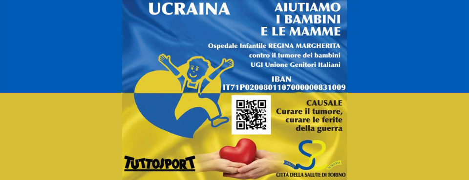 Tuttosport è al fianco delle missioni umanitarie per salvare i bambini ucraini malati di tumore: anche voi, insieme con noi e con l'ospedale infantile Regina Margherita di Torino e con l'Unione Genitori Italiani contro il tumore dei bambini, potete dare un aiuto concreto ai 13 piccoli pazienti e alle loro mamme, scampati alla guerra e da qualche giorno ricoverati a Torino nel reparto oncologico.